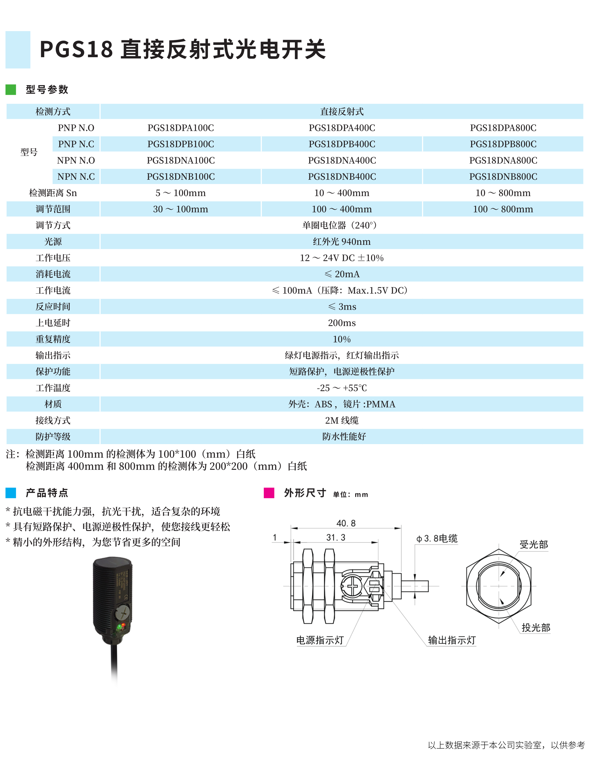 <p>产品描述:PM18(S)激光对射式 ● 抗电磁干扰能力强,适合复杂的环境; ● 激光小光斑设计,最小可检测3mm的物体; ● 可实现长距离检测,高精度检测;</p>